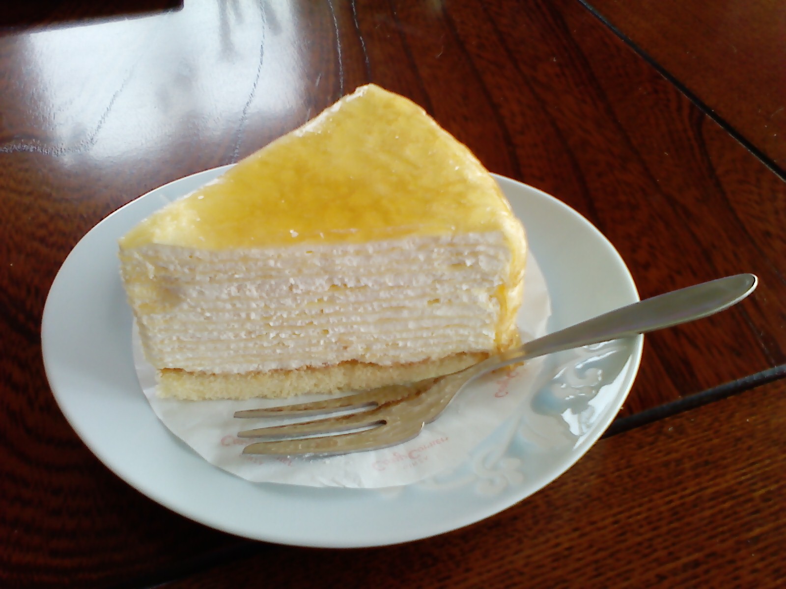 しかし、私って人は身体に良い事しようと心がけているのに、甘い物を欲してしまう。たまには良いのですがね…口が寂しくなるんですよね。この間、久しぶりにコージーコーナーのミルクレープが目にとまり(笑)うひひ。。。私の胃が欲しい!と私にお願いするので買ってあげました(笑)それがこれ!