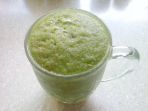 ところで、私のブームをお伝えします!!結構みなさんこれをやっている方多いと思います☆『自家製野菜ジュース』を毎朝、いただく事です。去年の6月から初めてかれこれ半年以上は経つんですね。夏も日記に書いたかもしれません。冬バージョンの野菜ジュースは『小松菜』を使ってジュースにしています。ジューサーで作るとサラサラのジュースですが私はミキサーで作るのでドロドロとした状態のものを飲んでいます。朝はジュースだけで結構、お腹が満たされ頑張れるんです☆
