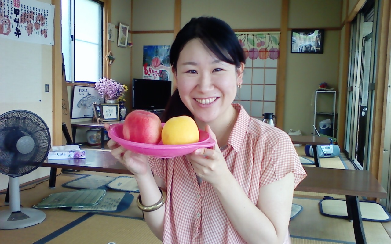 私は昨日、紗会のお休みだったのでお出かけしました♪姉が泊りに来たので母と3人で『桃狩り』へ♪朝早く起きて行きました。甲府あたりでしょうか。行ったらもう季節は秋。。。ぶどうがたくさん生っていましたよ♪あれれ??桃は??狩れないの??そう、もう時期が遅くなんと、『桃の食べ放題』をして来ました♪その写真です!