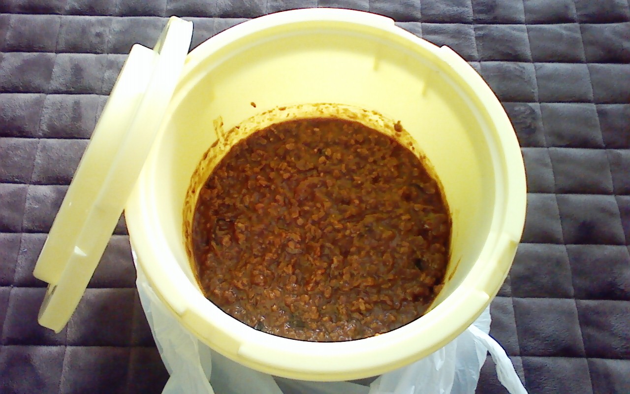 さて、今日はこの間『醤(ひしお)』を仕込んだお話をしたと思います。あれから1週間と5日。なかなか良い感じになりました♪写真を!