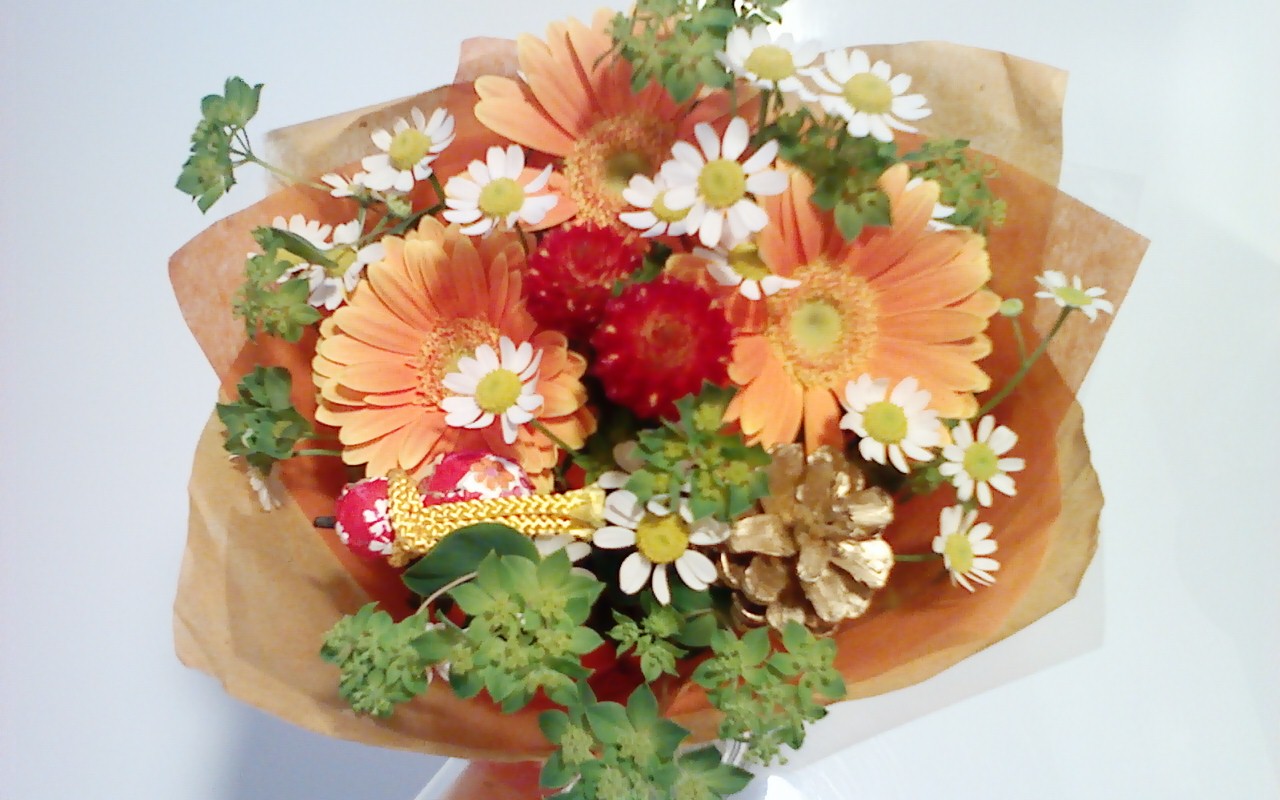 そうそう、29日に新年のお祝い花を買ったんです!オレンジがキレイで私に合ってるかなと思って選びました✿その写真がこれ♪