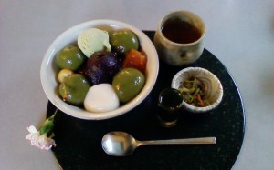 そして、砂浜に行って少し遊びまた鎌倉へ。。。初詣がまだだったので鶴岡八幡宮でお参り。そこでまたまた『凶』を引き・・・。2年連続ですよ~~私って最強の運の持ち主かもしれません(笑)。あんまりおみくじのことは考えず(本当はガックリですよ)、また歩き和のデザートを食べることにしました♪友人が知っていたお店『きらら』だったかな。『雲母』って書いてありました。ここで写真☆
