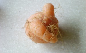こんな、かわいい『にんじんさん』が私の母の実家の畑で採れました♪台所にあった時『え??何このにんじんの形は?!』とかわいくて写真を撮らずにはいられませんでした!!毛虫のような・・・きもかわいいってこう言うことでしょうか(笑)みなさんは何に見えますか??