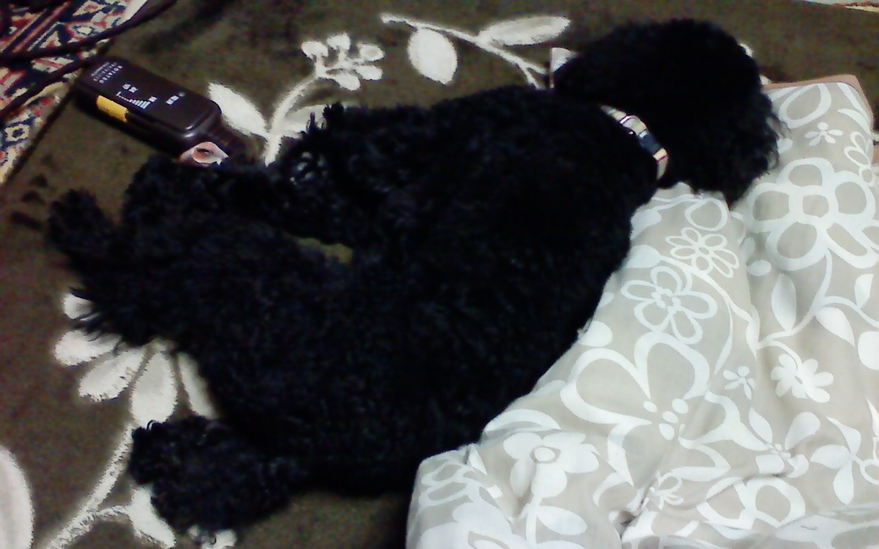 我が家の1番のえばりん坊を紹介します(笑)。まったく、もうトリミングに行ってなさ過ぎてボーボーです(笑)。でも、ふさふさが可愛いです!この写真は、身体の力が抜けて熟睡中・・・。