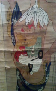 この何とも言えない描写も良いですが、ちょっと見えにくいですよね。まだまだ全てが分かっていませんが肺や心臓など明記されていました。何とも可愛らしい感じでしょうか。それが今度は・・・2枚目ですね。随分とハッキリと書かれています。心臓を守っているのが心包。心包経と言う経絡がありますが、心臓を守っている役割があります。しっかりと絵に描かれていました。1枚目とはまた違った描写で面白いです。