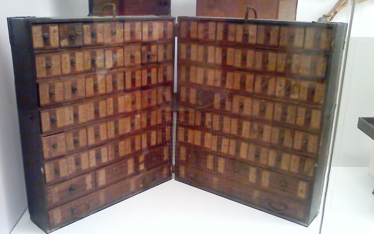 この3枚目の写真は日本の薬箱。漢方の生薬がこのひとつひとつの中に入っているんですね。なんかかわいいです。古い漢方医のお店に行くとこう言った薬箱が置いてある所もあるんじゃないかな。扉の所に『葛根』とか『芍薬』とかいろいろ書いてありました。本当に勉強になりました。見て歩いて時間を見たら1時間半以上は居ました!実のある時間を過ごすことが出来て本当に良かった。感謝感謝。