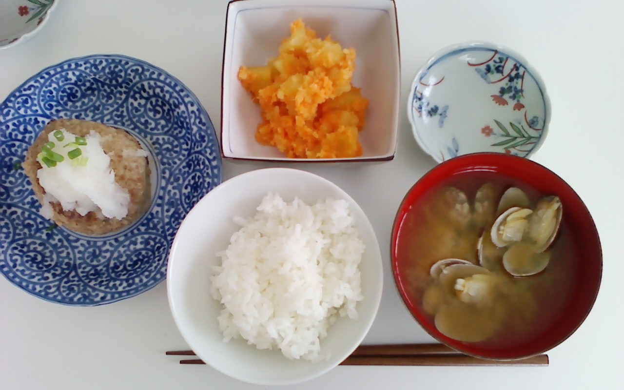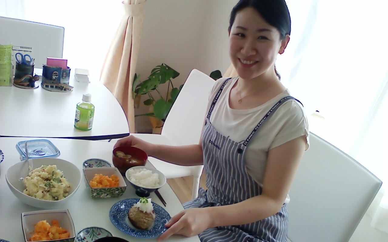 私は、恥ずかしながらお料理が苦手なので、それを克服する事が行くきっかけとなりました。昨日のメニューは『和風ハンバーグ』『ポテトサラダ』『あさりのお味噌汁』♪ご飯のとぎ方もおだしの取り方もすべて良いお勉強になり、なんと言っても美味しい!!ほんの少しの工夫で一味もふた味も変わるんですね!!久しぶりにエプロンなんてして新鮮でした(笑)。また、10月もお世話になろうと日を決めちゃいました♪では、写真を・・・