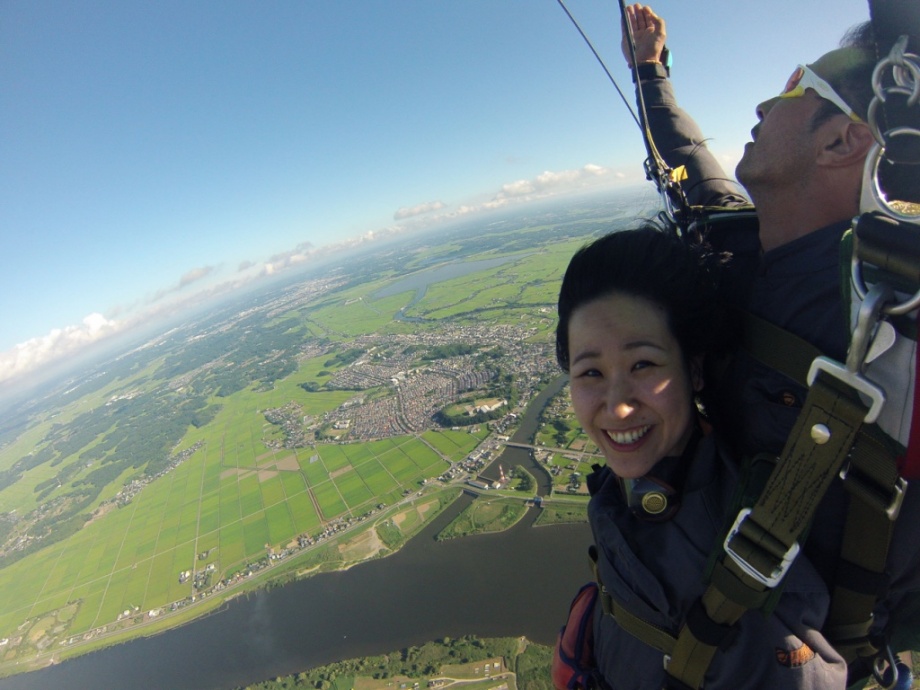 上空はやはり寒くて、でも雲がラピュタみたいに見えて。。。とっても感動的でした☆飛んでからは自分がどんな姿になっているのか分からないのと体がクルクル回っていましたが、終始キャーキャー言っていたようで下で待っている友人に降りてきてすぐに『飛んだ時からうるさかったよ~!』と大笑いされました。