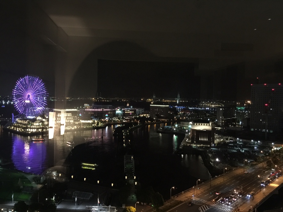 この写真、桜木町の建物から撮ったものです。私の影が入って少し怖いですね。。。でも夜景がキレイでパチリ☆