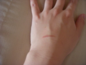 そして・・・この写真がafterです!分かりますか??すごい薄くなってます!!これは、実際に見るともう少し痕だと分かります!!もう片方の手はもうほとんどが残ってません!!!!お灸の力って改めてすごいなぁって感じました。毎日はお灸をすえる事が出来なかったのですが、2・3日くらいずつですかね。まだまだ、消えていくはずなので!完全になくせるまでお灸をすえていきます! と、みなさんに報告したくて、日記にかいてみました♪また、何か、出来事があったら書きこんでいきますので☆これからもよろしくお願いします。